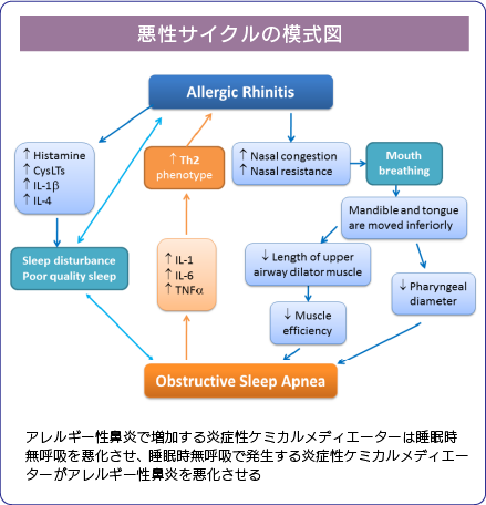 - アレルギー性鼻炎の際に放出される炎症性ケミカルメディエーターは睡眠障害を引き起こすことが報告されています。